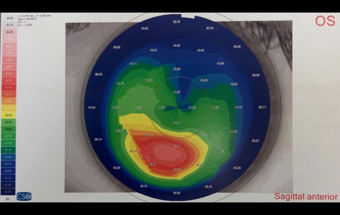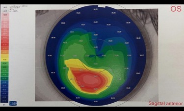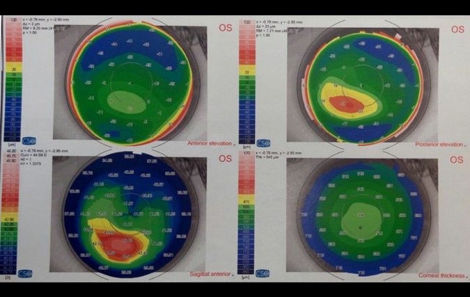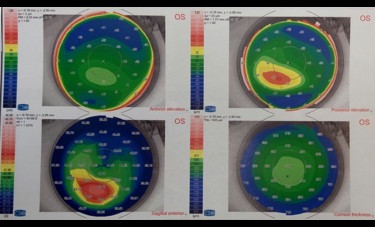 Autorefraction and autokeratometry (L-80), corneal topography and pachymetry (Sirius), visual acuity (Snellen), slit lamp biomiscroscopy and retinoscopy were done on family members. A diagnosis of KC was based on abnormal topography and at least on one clinical sign (Rabinowitz, 2003).