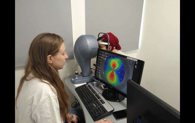 Conclusion: At the early stage of the disease, KC subjects, show significant lower CS compared to C. No correlation of CS to severity stage was shown, possibly due to the similar progression stage of KC eyes.