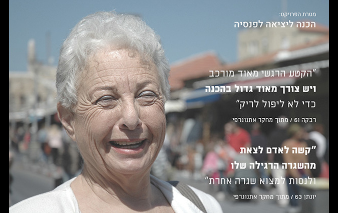 בעקבות עלייה בתוחלת החיים בישראל והתבגרות האוכלוסייה, התקופה שלאחר היציאה לגמלאות הופכת להיות ארוכה ומשמעותית יותר בחייו של האדם. ההתארכות התקופה דורשת הכנה והיערכות בתחומים שונים כמו: תעסוקה, פנאי, בריאות פיזית ומנטלית. במהלך הפרויקט בנינו הצעה למערך שירות שיפעל דרך מרכזי ההכוון וסדנאות הכנה לפרישה שמקימים ב"ג'וינט ישראל". השירות יכין לתקופת הפרישה, על ידי סיוע בתכנון וליווי שיגרה פעילה, תוך התמקדות בתמיכה והכנה מנטלית לקראת תקופה זו.