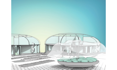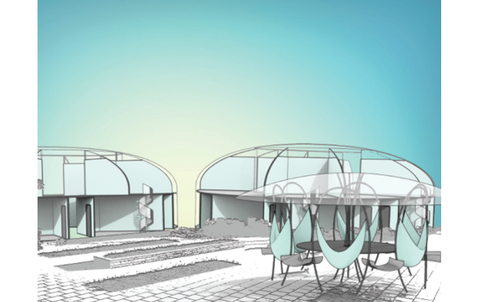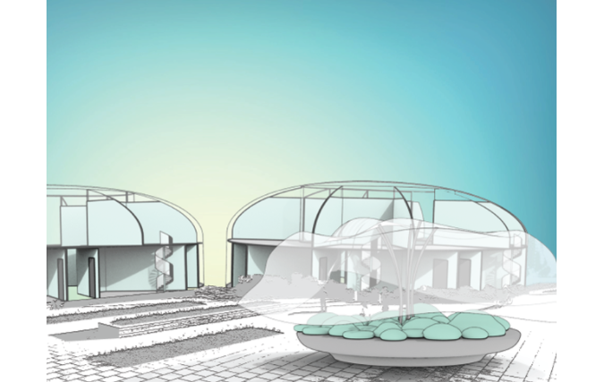 במרחב הציבורי מוצע עיצוב מחדש של מבנה בית הספר ופינות ישיבה חכמות (גם הן ממוקמות בחצר בית הספר) בעלות זכוכית חכמה המווסתת את קרינת השמש.