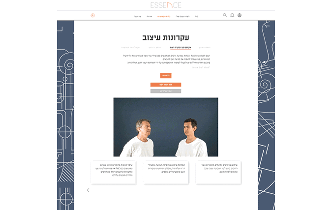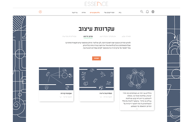 Essence הינה פלטפורמה אינטרנטית המשמשת מדריך עיצובי וכלי תכנוני המסתנכרן עם תוכנות אדריכליות כגון Revit. האתר כולל הנחיות ועקרונות עיצוביים, סימולטור, תקני נגישות וספריית חומרים. הפרויקט מיועד לאדריכלים ומעצבי פנים ומסייע בתכנון מרחבים מכילים המותאמים לכבדי שמיעה. הממשק מאפשר להבין את הצרכים המיוחדים ובו בעת ולחוות את ההשפעה הרבה של החלל על אנשים כבדי שמיעה . המדריך העיצובי מבוסס על ארבעה עקרונות: תאורה וצבע, ארגון המרחב והריהוט, אקוסטיקה ובקרת רעש והנגשת מידע וטכנולוגיות מסייעות. באתר ניתן להעלות תוכניות אדריכליות ולהשתמש בכלים לניתוח החלל, התאורה והאקוסטיקה. לאחר הניתוח, המערכת תזהה ליקויים ותציע פתרונות על פי העקרונות ובהתאם למוצרים ולחומרים הקיימים בשוק.
