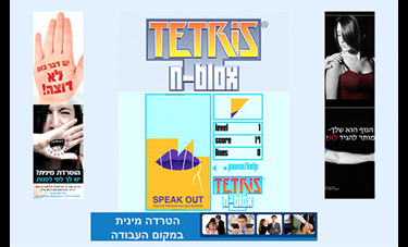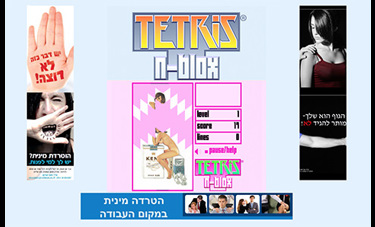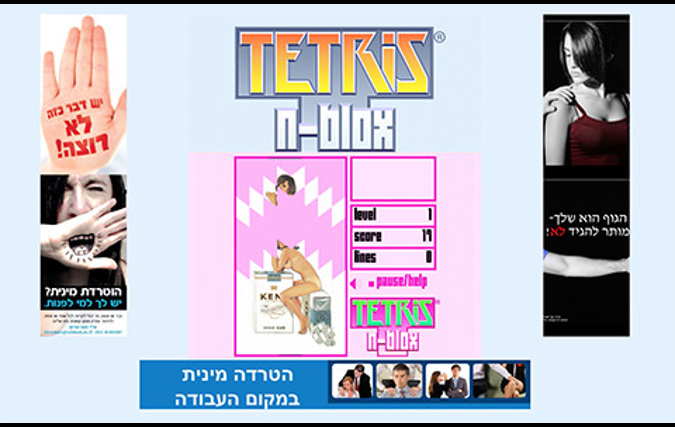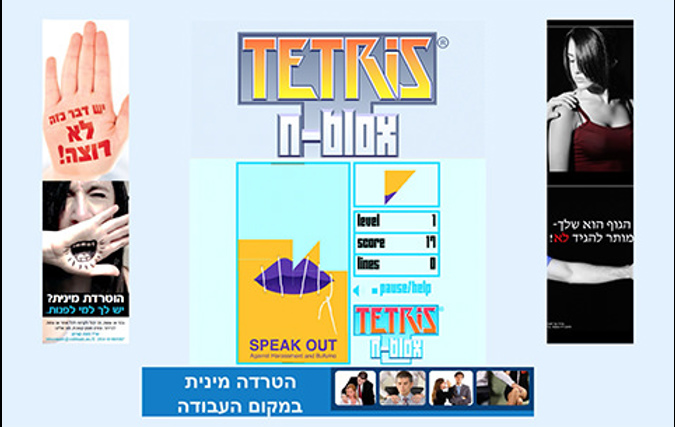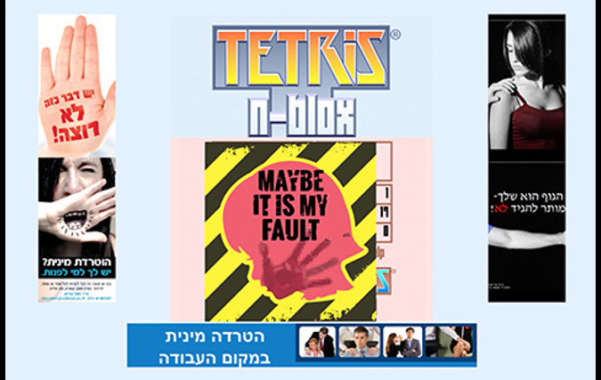 משחק טטריס מדומה, שבו משתתפות כרזות המחפיצות נשים וכרזות על הטרדות מיניות מתקופות שונות.