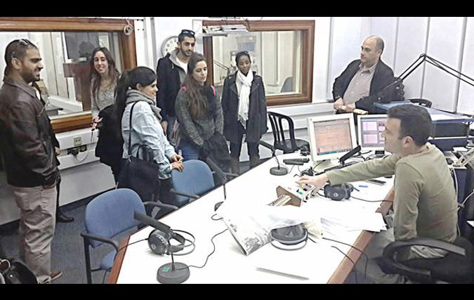 אתמול, סיירו הסטודנטים של סדנת רדיו של החוג לפוליטיקה ותקשורת במרכז החדשות של קול ישראל. הסטודנטים קיבלו הסברים מנפתלי מנשה, קריין ועורך חדשות בכיר על הדרך שבה מתנהלת מערכת החדשות של קול ישראל. הם צפו בשידור חי של התכנית "בחצי היום" יומן הצהריים של רשת ב' וראו באופן מעשי כיצד יומן חדשות לחוץ ואינטנסיבי קורם עור וגידים. היומן דיווח בשידור חי על ההלוויות של היהודים שנהרגו בפיגוע בפריס ונקברו בירושלים. יובל גנור, מגיש היומן אירח את הסטודנטים באולפן תוך כדי שידור וענה לשאלותיהם. כמו כן, ראו הסטודנטים מקרוב כיצד עורכים מהדורת חדשות בקול ישראל, על כל השיקולים וכן צפו בעבודה בדסק האינטרנט של רשת ב'.