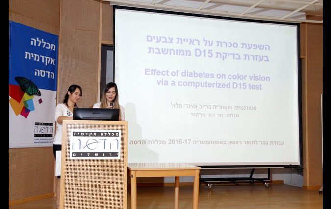 בשבוע שעבר נערך טקס הצגת עבודות גמר של התואר הראשון בחוג למדעי האופטומטריה בו הציגו הסטודנטים את עבודות הגמר שלהם בקמפוס נביאים ובקמפוס שטראוס בפני אורחים, מנחים, חברי סגל וסטודנטים. יום המצגות היווה אירוע מסכם ומרשים לפעילות המחקרית שהתבצעה במשך השנה כולה. במעמד זה הציגו הסטודנטים בפני חברי הסגל וחבר נבחר של שופטים מקצועיים את עבודות הגמר.