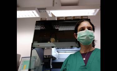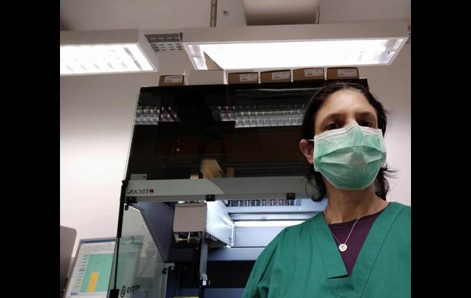 בתמונות: ד"ר ארבל עדן במהלך העבודה במעבדות במסגרת משבר הקורונה. צילומים באדיבות ד"ר ארבל עדן