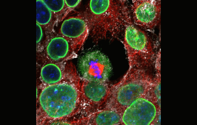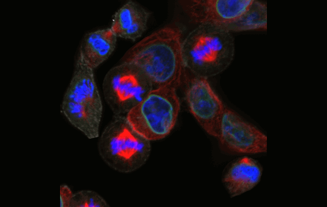 במסגרת ניסוי שביצעו סטודנטים בשנה ב' בחוג לביוטכנולוגיה, במהלך קורס מעבדה בביולוגיה של התא, צבעו הסטודנטים בעזרת נוגדנים מסומנים בחומרים פלורסנטים וצבענים מרכיבים שונים של שלד התא ושל ה-DNA בתא, על מנת לעקוב אחר מחזור התא. הסטודנטים צפו וצלמו את התוצאות בעזרת מיקרוסקופ קונפוקאלי משוכלל.