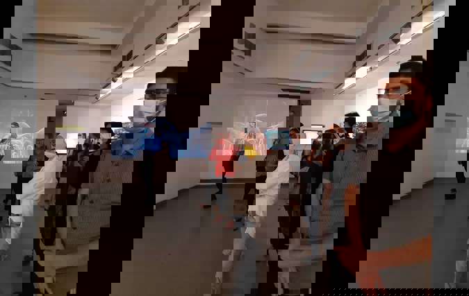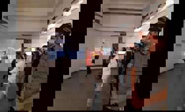 בשבוע שעבר נערך סיור לסגל המנהלי של המכללה האקדמית הדסה ירושלים בתערוכה 'במרחק זריקת אבן'. אוצרת התערוכה, טלי קיים, העבירה את הסיור והביאה תובנות, היבטים ומידע על אמנות מעוררת מחשבה ודמיון.