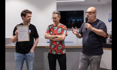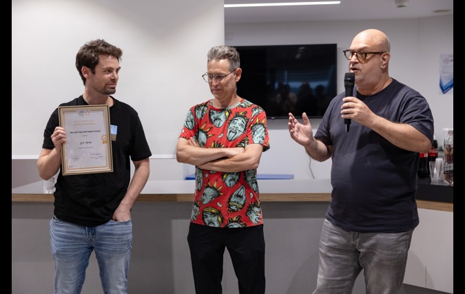 אמיר כהן ויורם רשף - הענקת תעודת הצטיינות בפרויקט הגמר לאיתי דגן