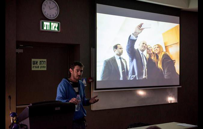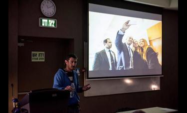Press photographers, magazine photographers and staff from branding and design gave presentations on their experience with photographic portraits of politicians. The speakers referred to commissioned work, the quality of relations with the politician during the shoot, whether it was official or in a private home, and the distinction between commissioned work and personal photos taken during an official project. Michal Fattal, for example (photos of Netanyahu in black and white), was the official photographer for Netanyahu's campaign, and at the same time worked on a personal project in black and white. These are the kinds of rare moments that can occur during daily meetings with a politician.