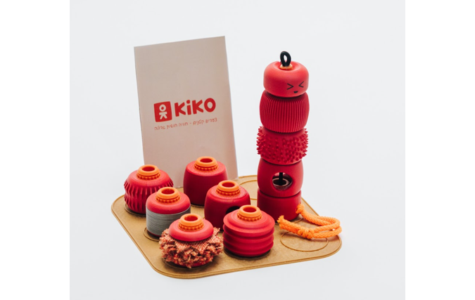 Kiko היא ערכה טיפולית-משחקית, אשר פותחה בשיתוף מרפאות בעיסוק ופסיכולוגית התפתחות הילד, מתוך חיבור בין עולם הטיפול לעולם העיצוב – ליצירת חוויה ייחודית, אנושית ונגישה. הערכה נועדה ללוות ילדים עם קושי תחושתי במהלך טיפול – ולתמוך בתרגול גם בבית והיא כוללת דמות מודולרית המשלבת מגע, רטט, קול וטקסטורות משתנות – בהתאמה אישית לפרופיל התחושתי של כל ילד.