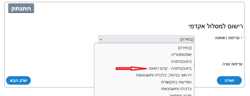 בהרשמה באתר חשוב לסמן ברישום למסול אקדמי: ביוטכנולוגיה – קדם רפואה (ראו צילום מסך)